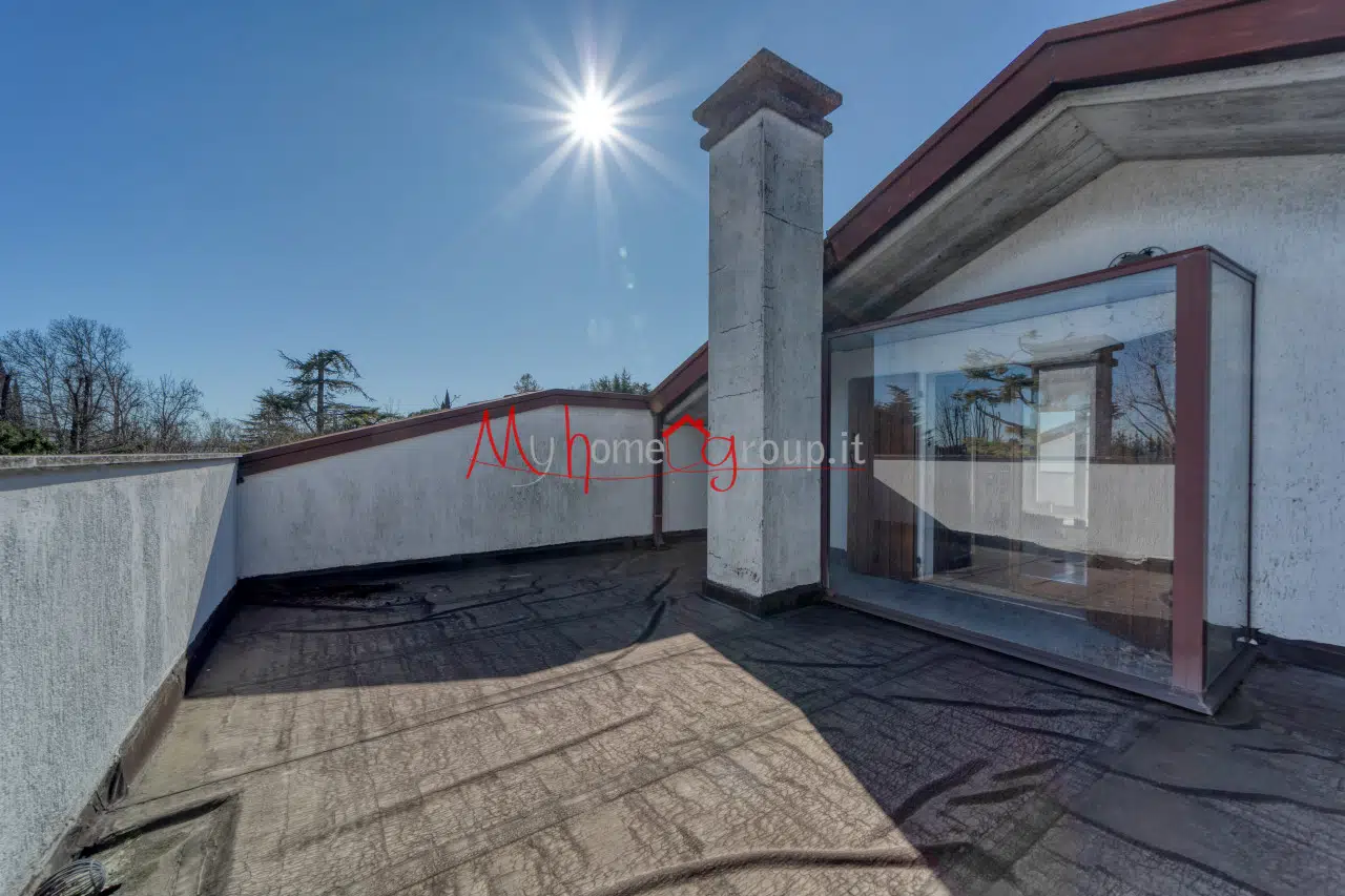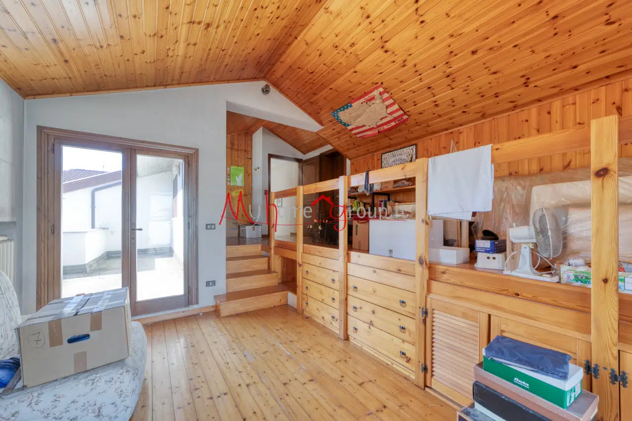 Mansarda: Al piano superiore, una stanza jolly di 26 mq con ripostiglio, che si affaccia su una terrazza abitabile di 30 mq con vista panoramica sul verde.