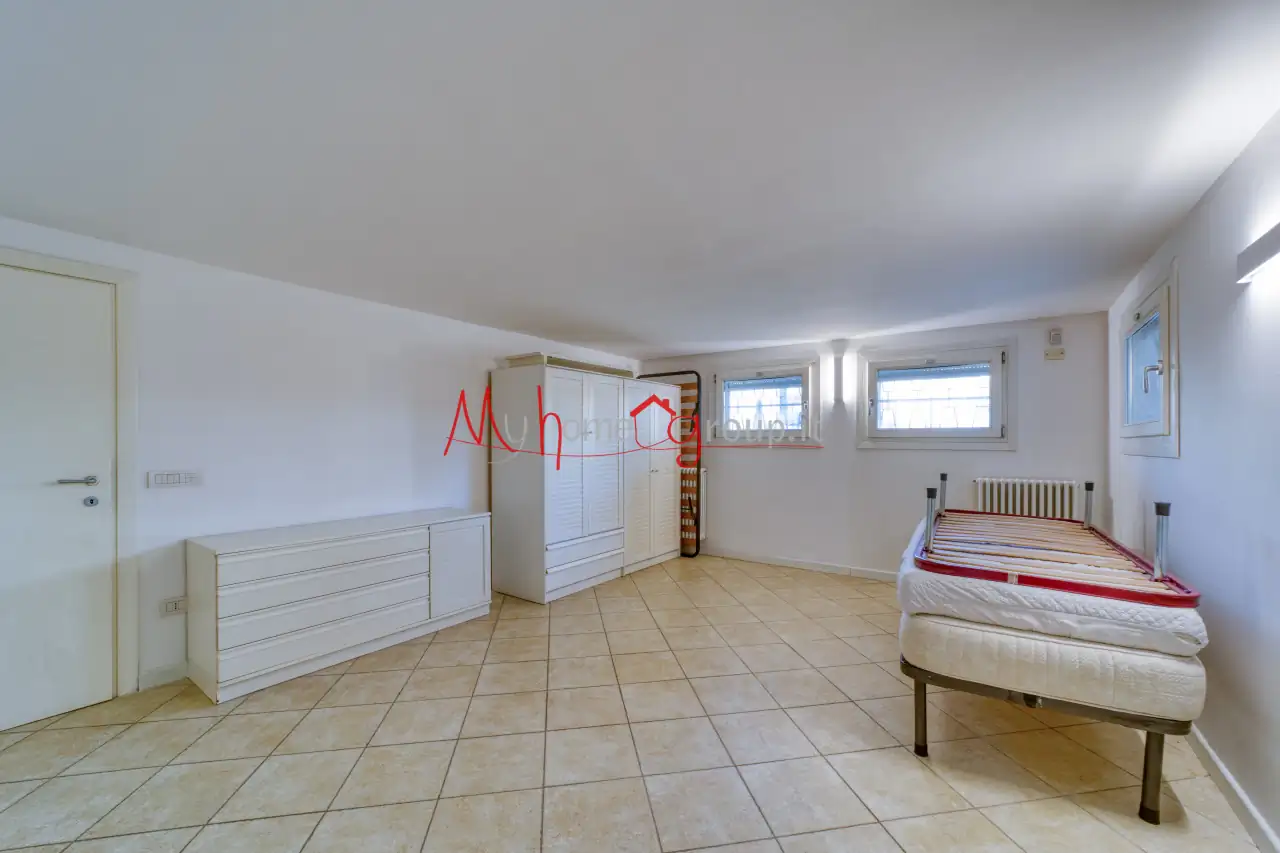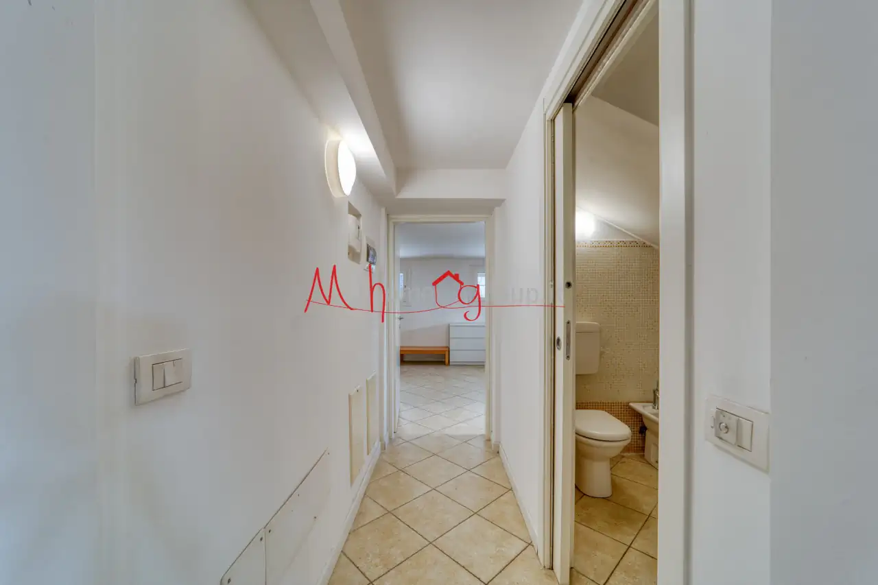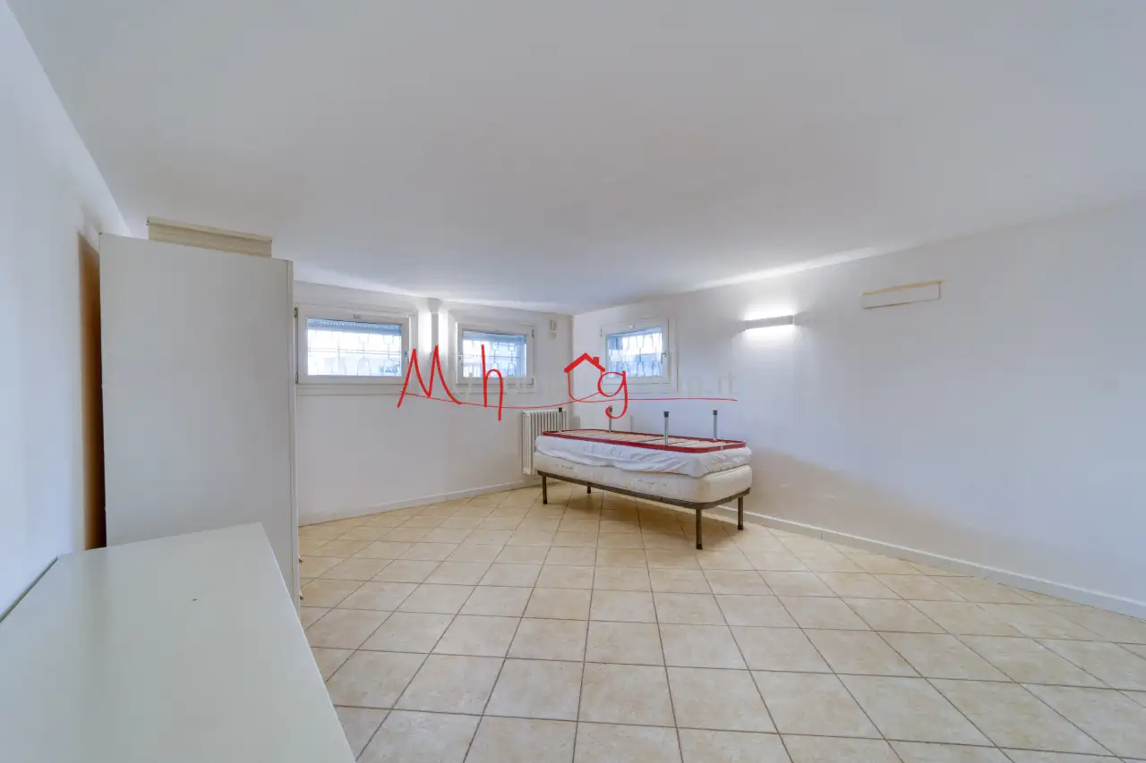 Gli spazi interni sono ben distribuiti in due stanze ampie collegate da un disimpegno, offrendo versatilità d'uso; si presta perfettamente anche come ufficio di rappresentanza o pied-à-terre. Gli infissi in legno color bianco ad anta ribalda conferiscono luminosità agli ambienti mentre l'impianto d'allarme assicura tranquillità.