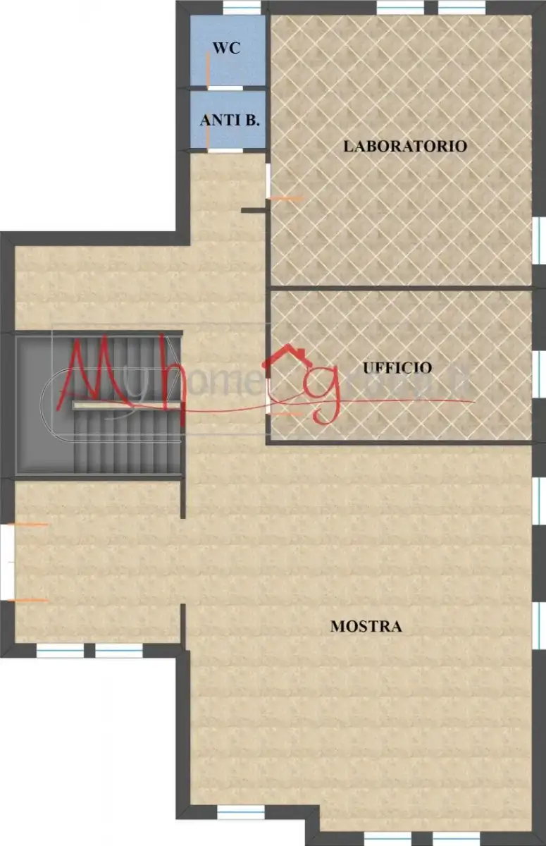 Il piano terra di 155 mq è composto da un ampio ingresso, tre stanze (di cui una di 55mq adibibile anche a show room e le altre di 17 e 28,5 mq) e servizi; il piano interrato collegato da una comoda scala interna è di 212mq, adibibile a magazzino con altezza di 2,20 mt.